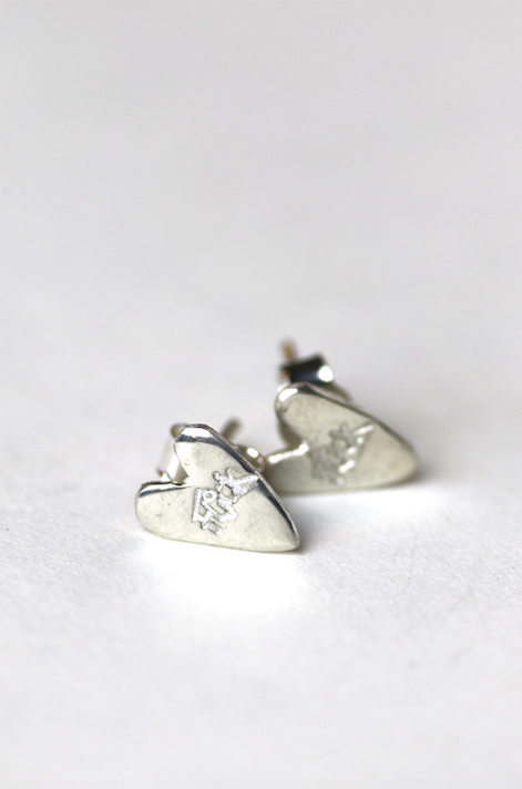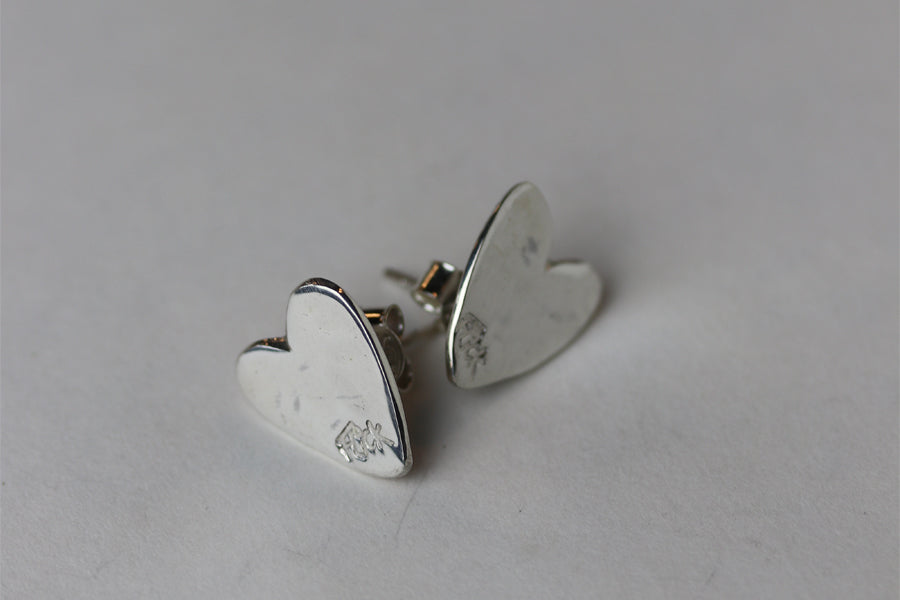 An everyday jewel for carefree wearing. These sterling silver heart studs are handmade and stamped with Flick's makers mark. Each piece is unique and varies in size and shape.